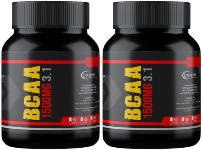 OBJETIVO PRINCIPAL DO BCAA 3.1 ITAERVAS Recomendado no pós-treino, com a intenção de contribuir para o aumento da síntese proteica, recuperando e aumentando o músculo para o próximo treinamento. Quando suplementado no pré-treino, ele também auxilia na melhora da resistência e, por consequência, da performance, evitando a fadiga. COMPOSIÇÃO 500mg L-Leucina. 500mg L-Valina. 500mg L-Isoleucina. SUGESTÃO DE USO 4 cápsulas 1x ao dia INGREDIENTES L-Leucina, L-Valina, L-Isoleucina, cloridrato de piridoxina (vitamina B6), antiumectantes (talco e dióxido de silício) e veículo de cápsula: gelatina, corante artificial azul brilhante e corante inorgânico dióxido de titânio. CONSERVAÇÃO E ADVERTÊNCIAS Conservar o produto em local fresco e seco ao abrigo de raios solares. Crianças, gestantes, idosos e portadores de quaisquer enfermidades devem consultar o médico e/ou nutricionista. Este produto não substitui uma alimentação equilibrada e seu consumo deve ser orientado por nutricionista ou médico. Após aberto consumir em até 90 dias.