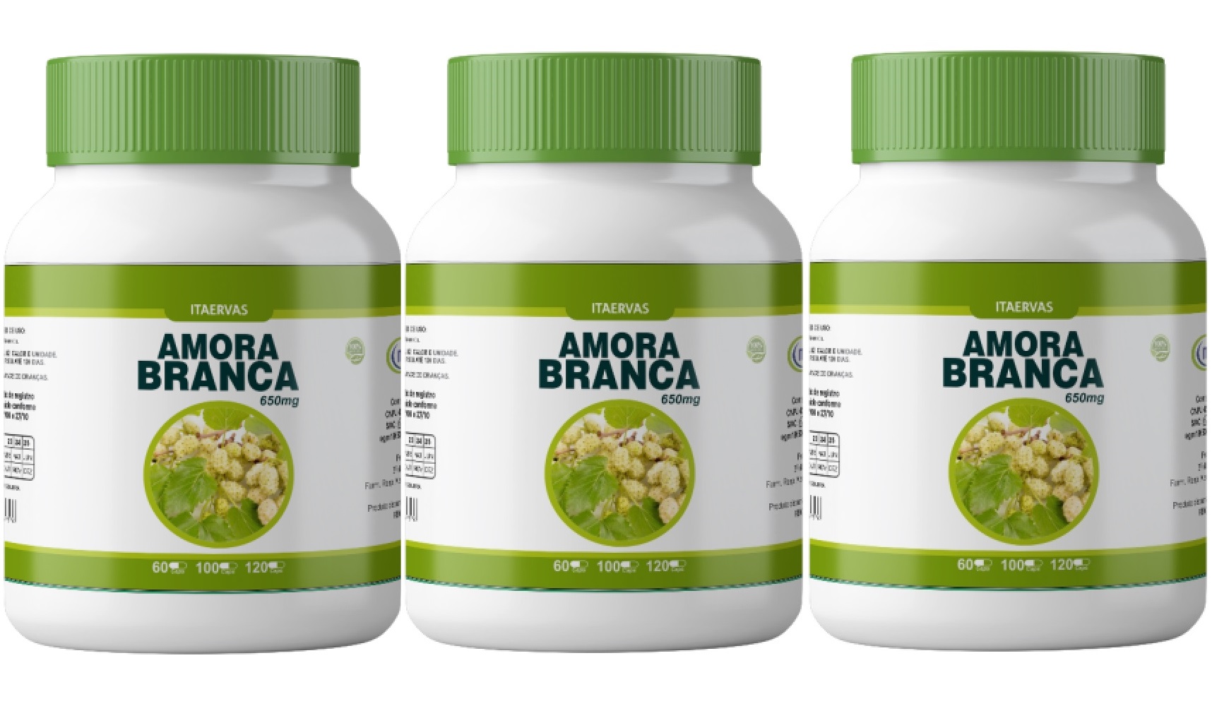 Composição Amora Branca em cápsulas.