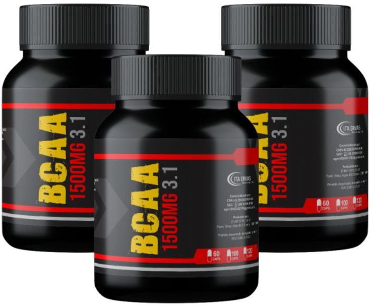 OBJETIVO PRINCIPAL DO BCAA 3.1 ITAERVAS Recomendado no pós-treino, com a intenção de contribuir para o aumento da síntese proteica, recuperando e aumentando o músculo para o próximo treinamento. Quando suplementado no pré-treino, ele também auxilia na melhora da resistência e, por consequência, da performance, evitando a fadiga. COMPOSIÇÃO 500mg L-Leucina. 500mg L-Valina. 500mg L-Isoleucina. SUGESTÃO DE USO 4 cápsulas 1x ao dia INGREDIENTES L-Leucina, L-Valina, L-Isoleucina, cloridrato de piridoxina (vitamina B6), antiumectantes (talco e dióxido de silício) e veículo de cápsula: gelatina, corante artificial azul brilhante e corante inorgânico dióxido de titânio. CONSERVAÇÃO E ADVERTÊNCIAS Conservar o produto em local fresco e seco ao abrigo de raios solares. Crianças, gestantes, idosos e portadores de quaisquer enfermidades devem consultar o médico e/ou nutricionista. Este produto não substitui uma alimentação equilibrada e seu consumo deve ser orientado por nutricionista ou médico. Após aberto consumir em até 90 dias.