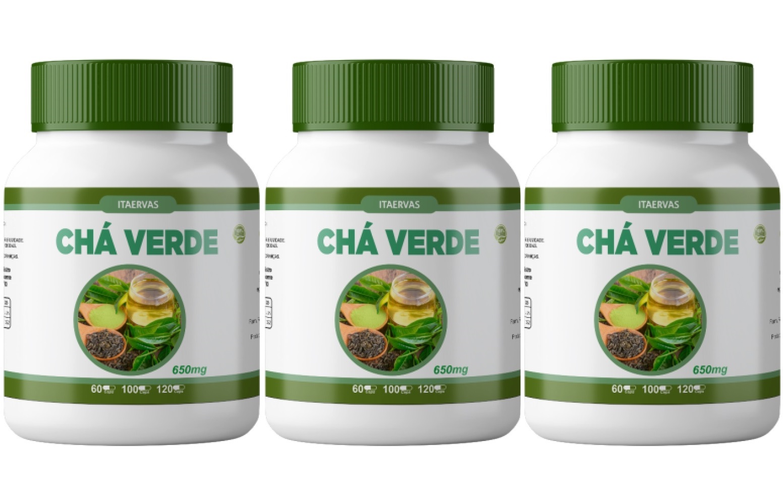 3x Chá Verde Seca Barriga 500mg 120 Cápsulas Itaervas