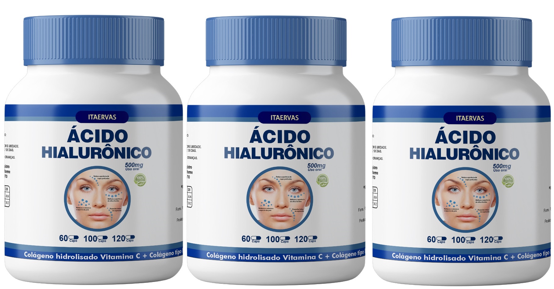 3x Colágeno Tipo 2 + Ácido Hialurônico + Colágeno Hidrolisado 500mg Itaervas Premium
